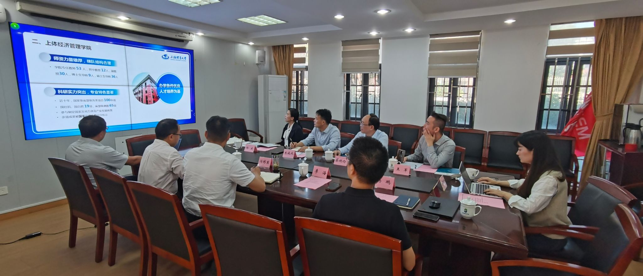 2023年10月30日,由湖北师范大学历史文化学院、体育学院领导共同组成的来访团到太阳成tyc122cc交流,湖北师范大学计划申办体育旅游专业,特来上体学习体育旅游专业办学经验。